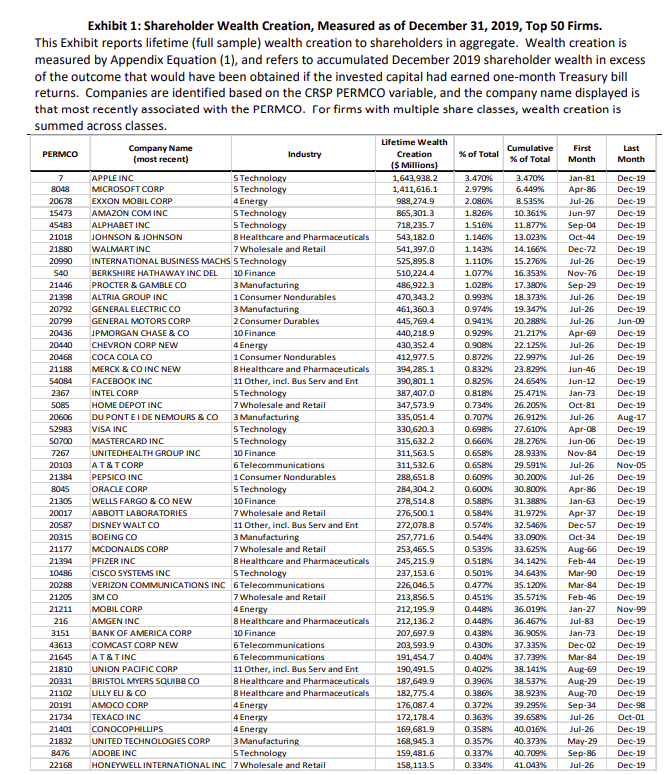 • Just 1.1% of companies were responsible for 75% of all wealth created